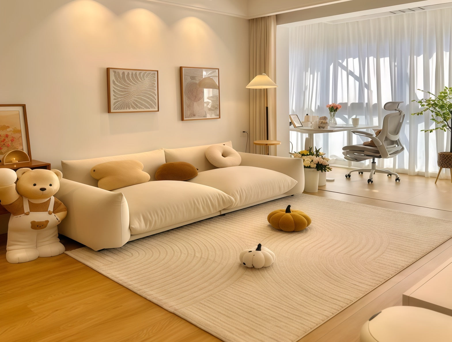 Its design cleverly balances aesthetics and practicality, maintaining the cleanliness and tranquility of the living room and embodying a minimalist modern home aesthetic.