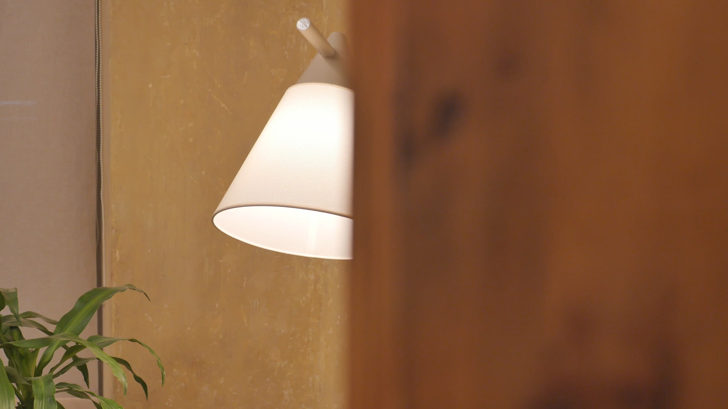 Filtered by the soft lampshade, it casts a comfortable, non-aggressive light, like that of dusk, enough to dispel the gloom without disturbing the atmosphere of contemplation or relaxation.